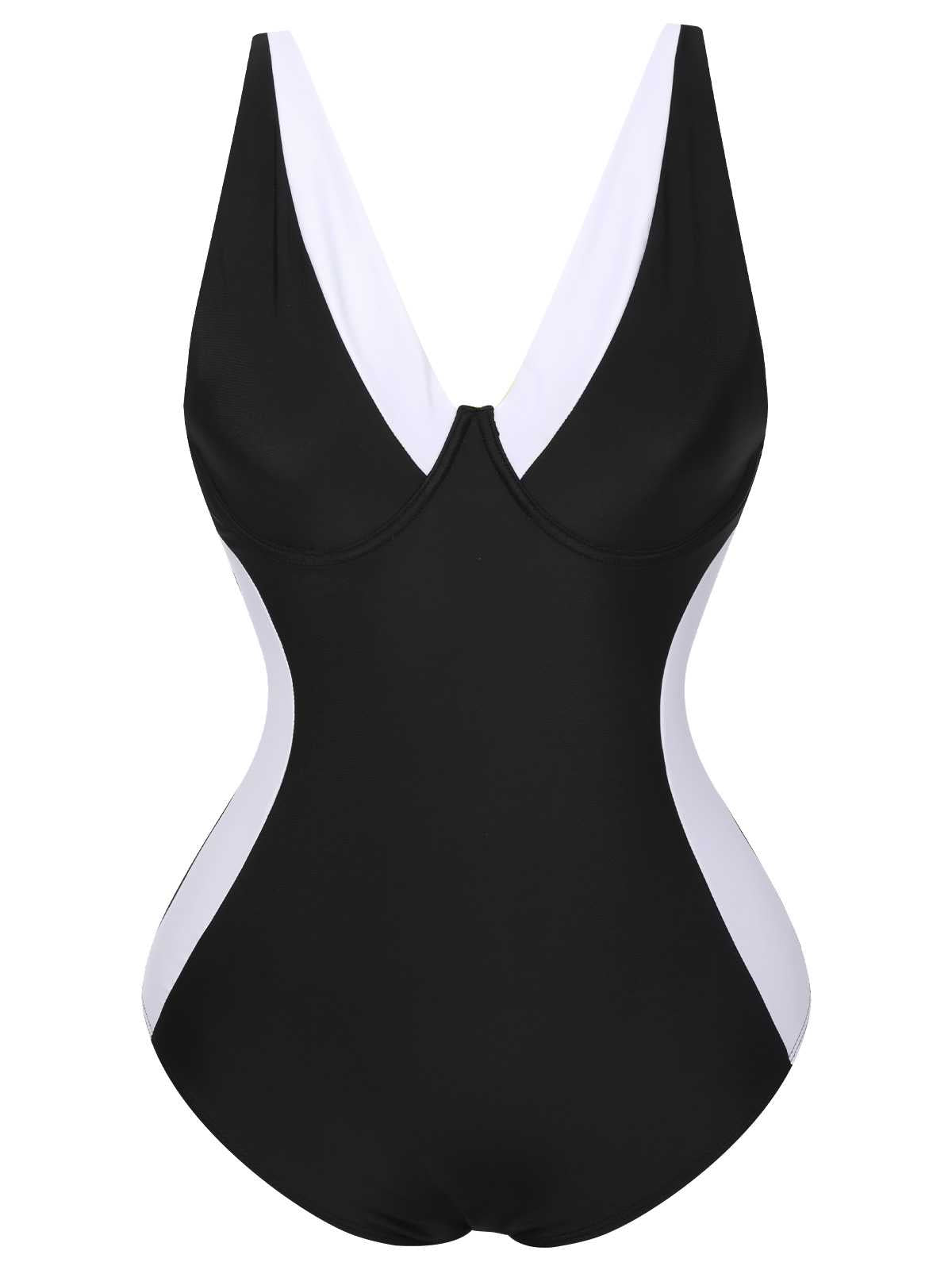 [Plus Size] Black 1930s Contrast One-Piece Swimsuit