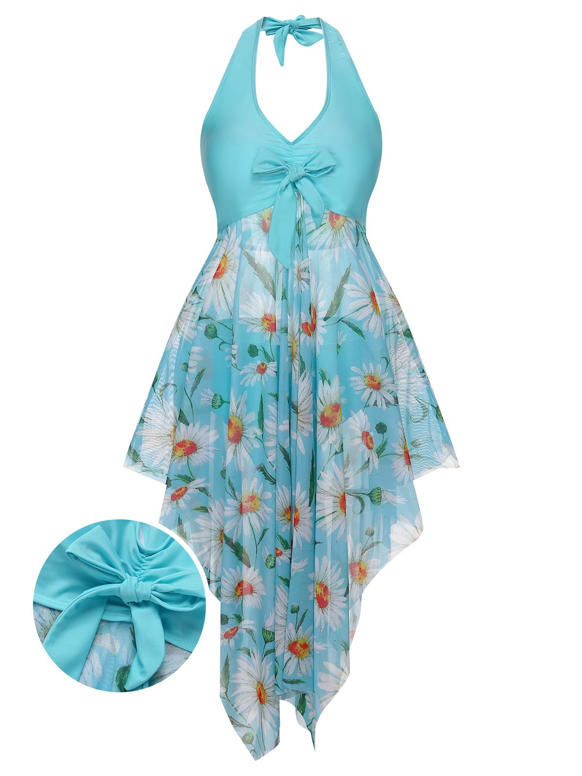 [Plus Size] 1930S Daisy Bow Halter Skirt Swimsuit