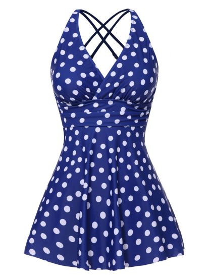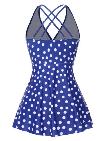 1930s Cross Straps Polka Dots Swimsuit