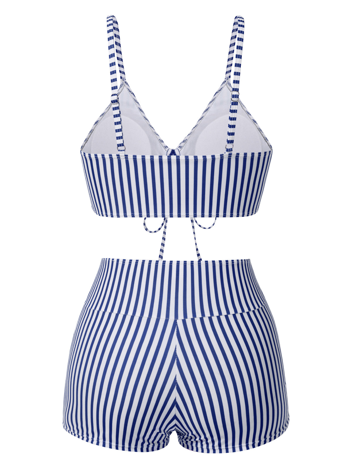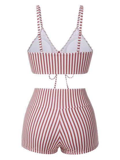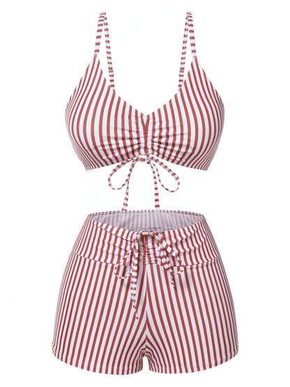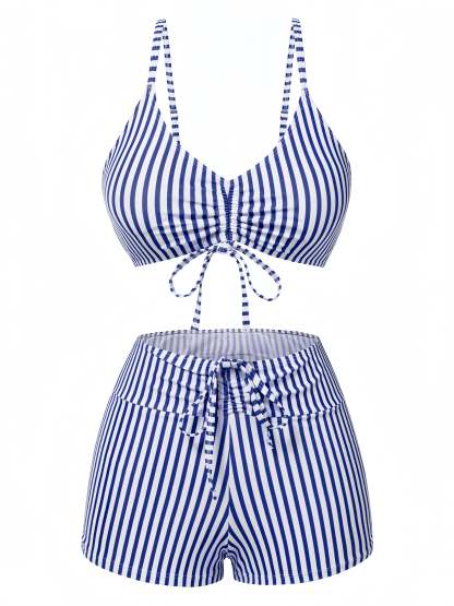 1930s Drawstring Straps Vertical Stripe Boxer Bikini