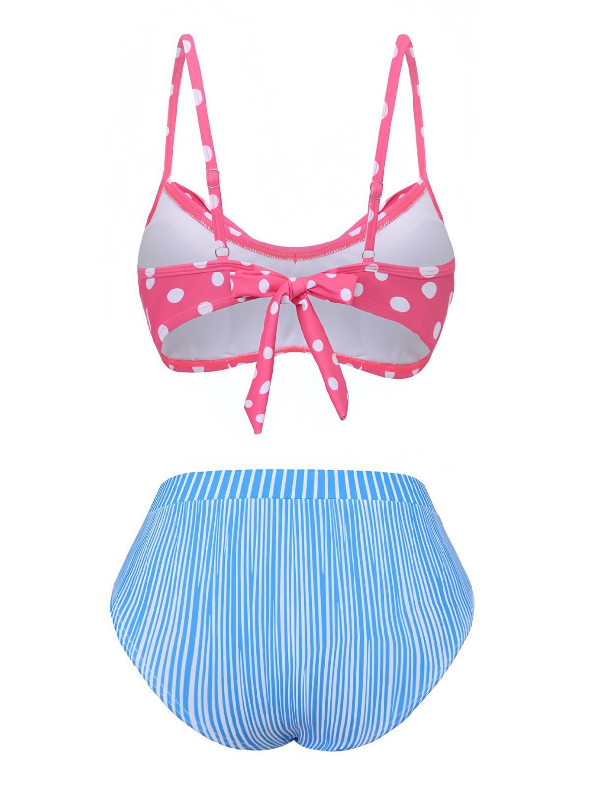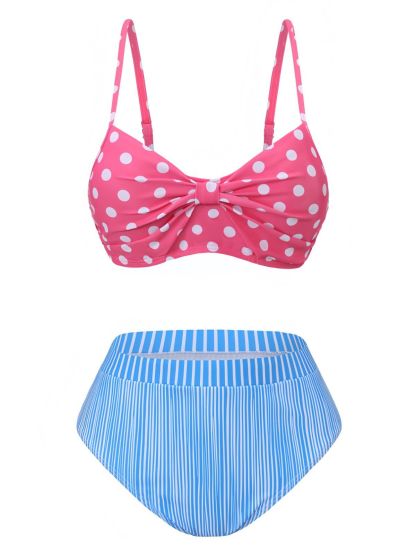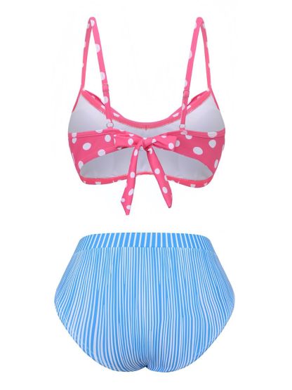 1950s Spaghetti Strap Polka Dot Striped Bow Bikini Set