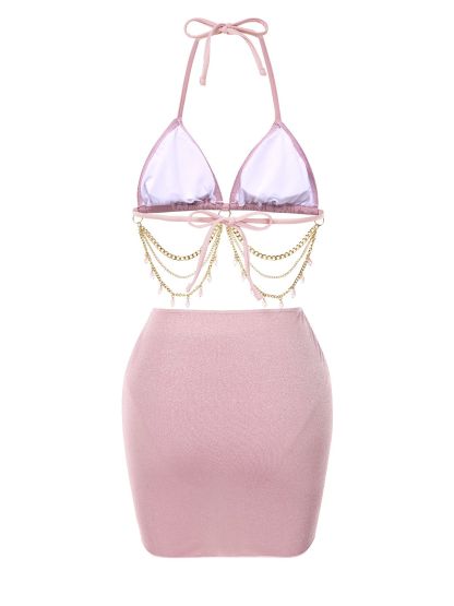 1970s Halter Shimmery Chain Crystal Bikini & Cover-Up