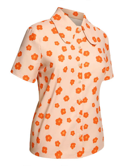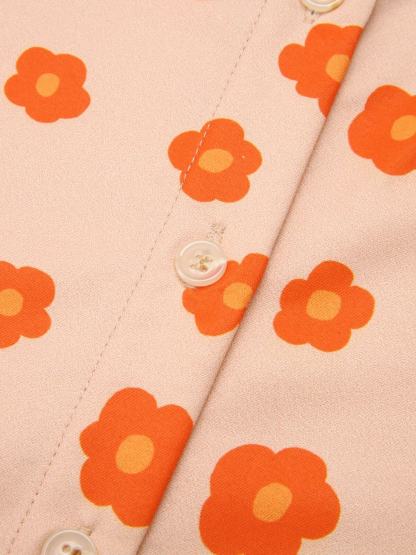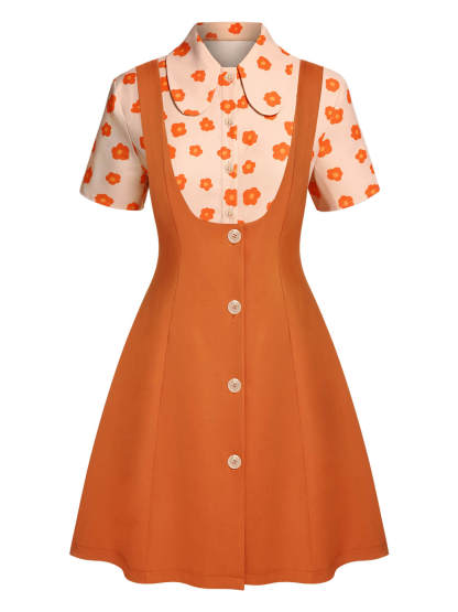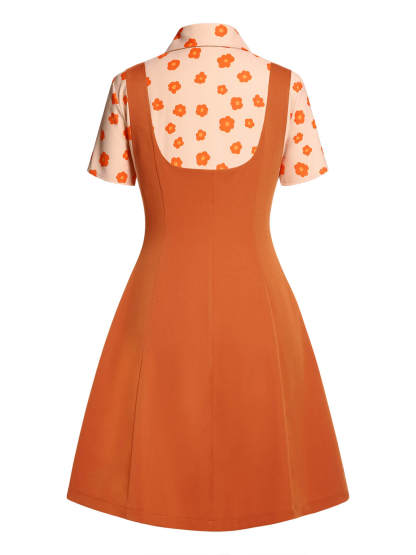 2PCS Orange 1960s Floral Shirt & Skirt