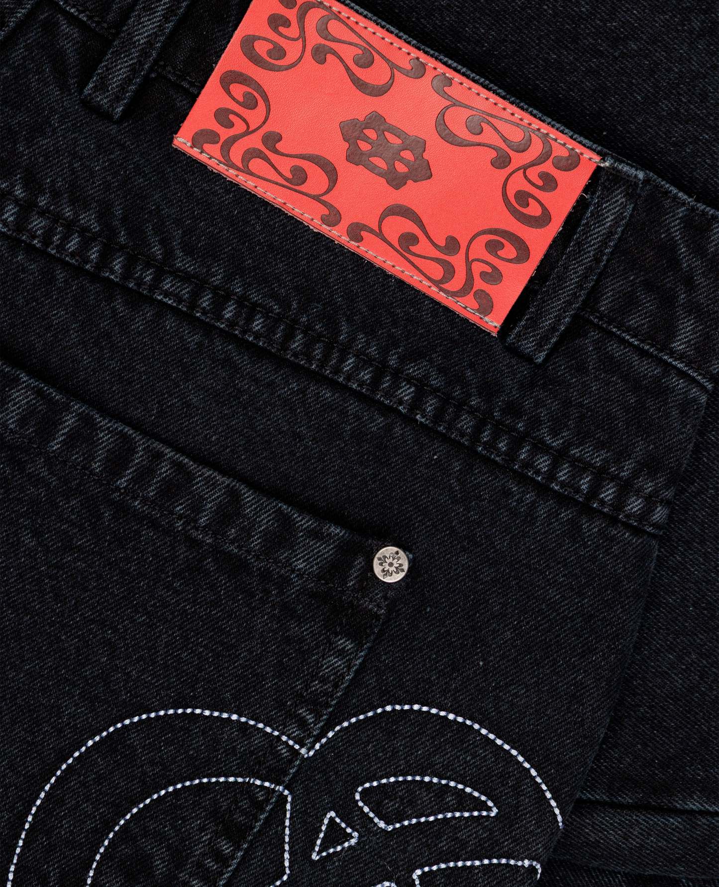 Red embossed leather patch