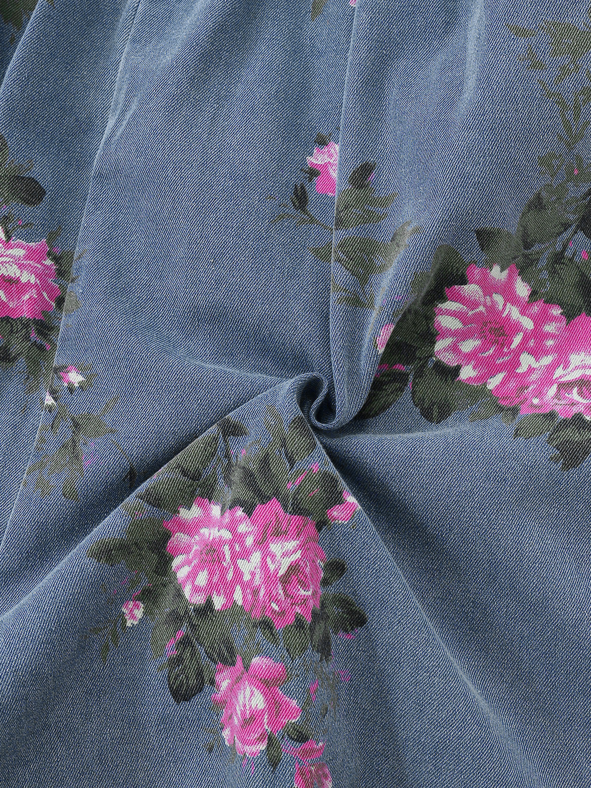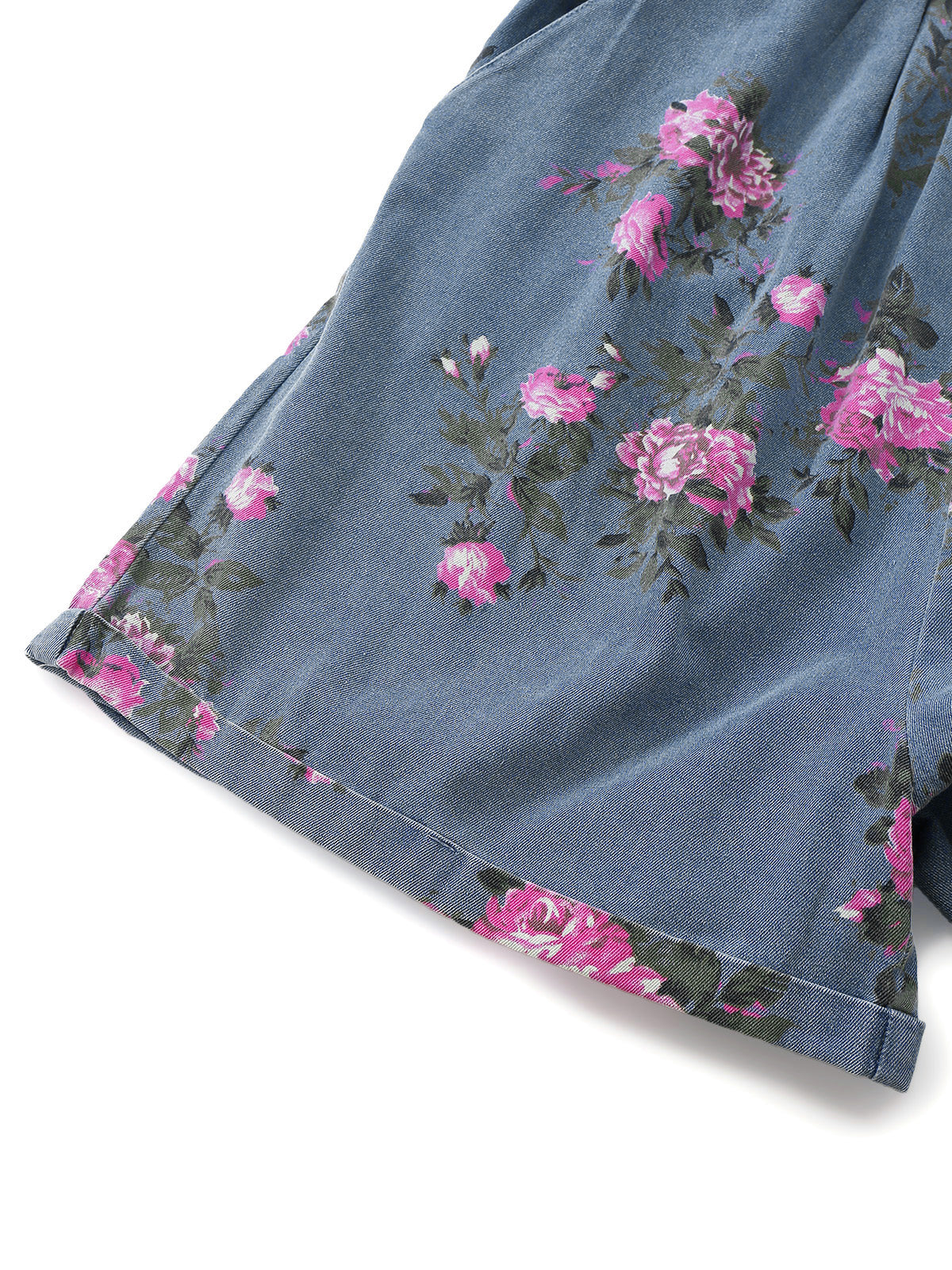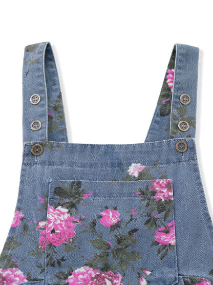Blue 1960s Denim Floral Pocket Wide Strap Romper