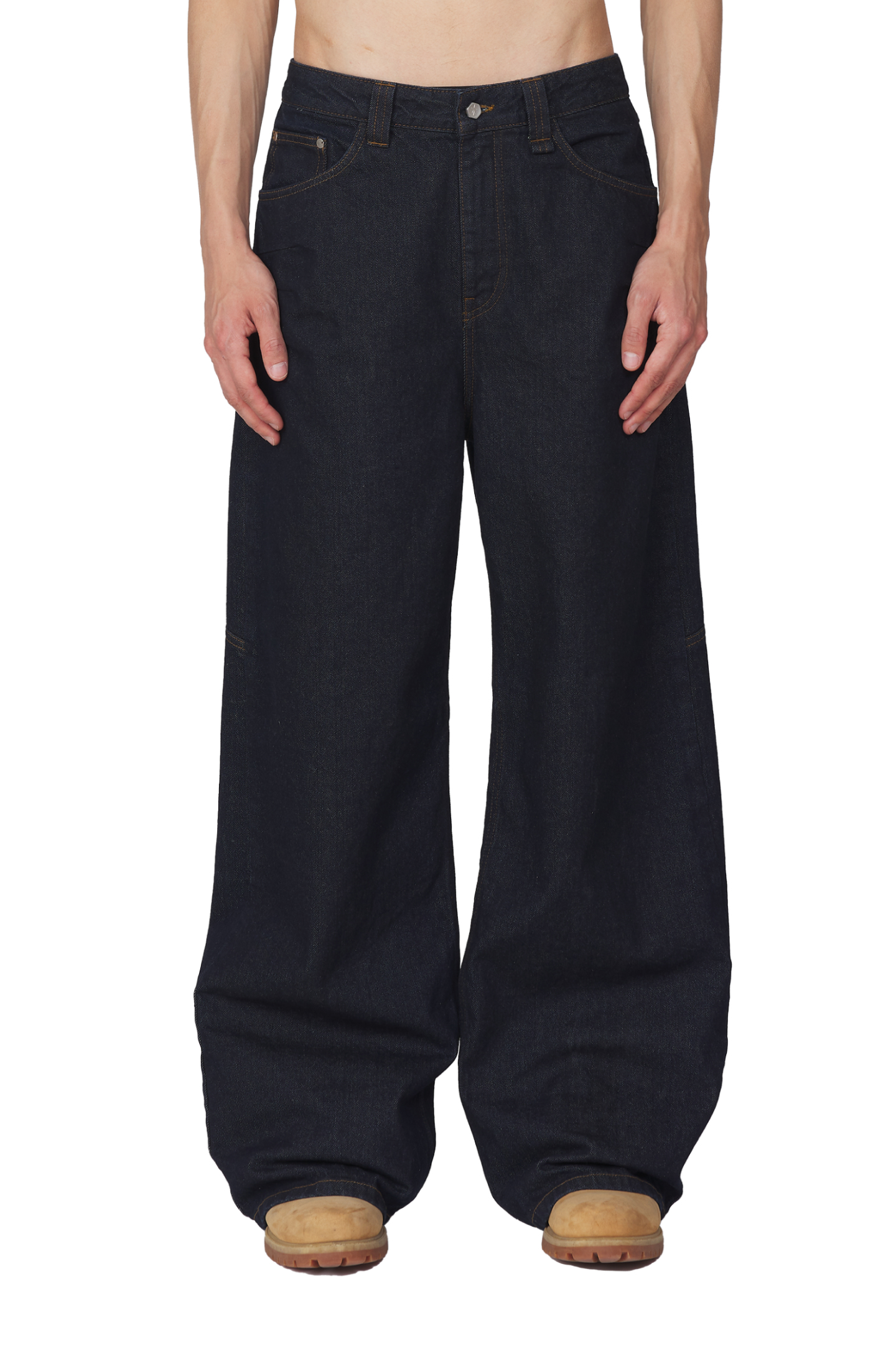 - Male Model is 192 cm and wears LARGE- Female Model usually is 170 cm and wears SMALL- 100% Cotton- Raw Denim Cotton