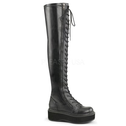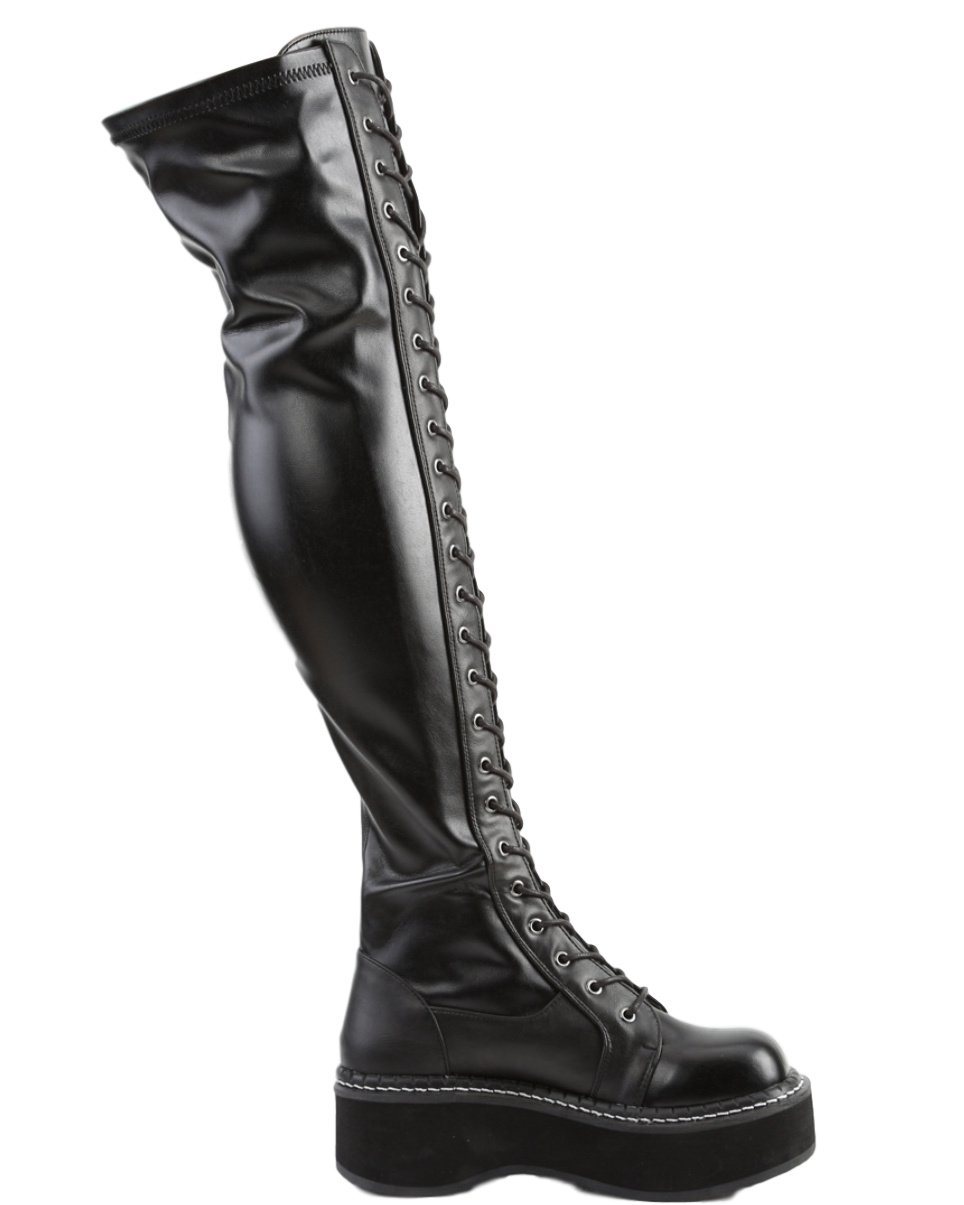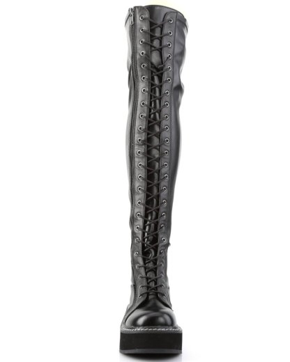 2" (5.1cm) PF STR Thigh-High Lace-Up Boot with Outer Metal Zipper. Vegan leather.