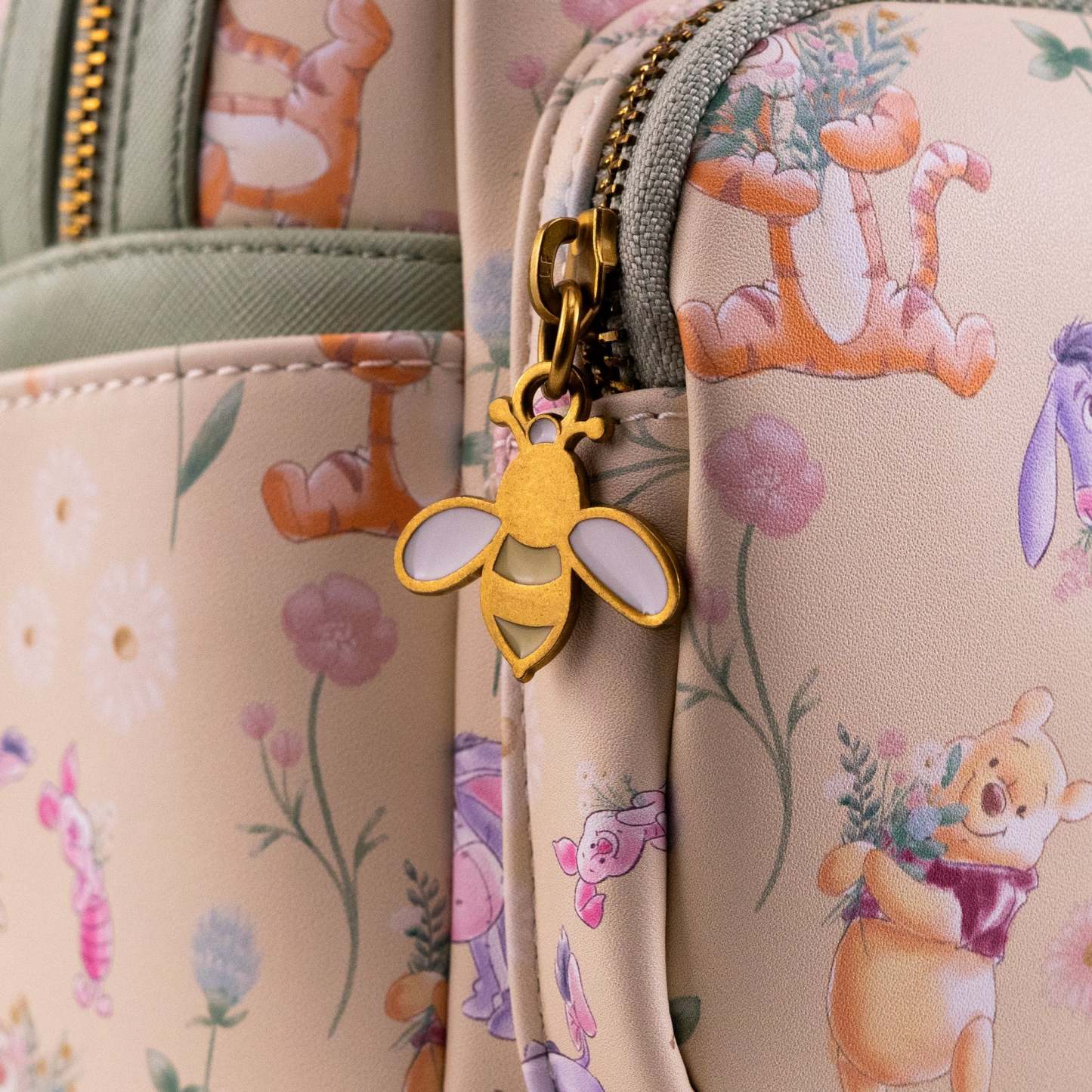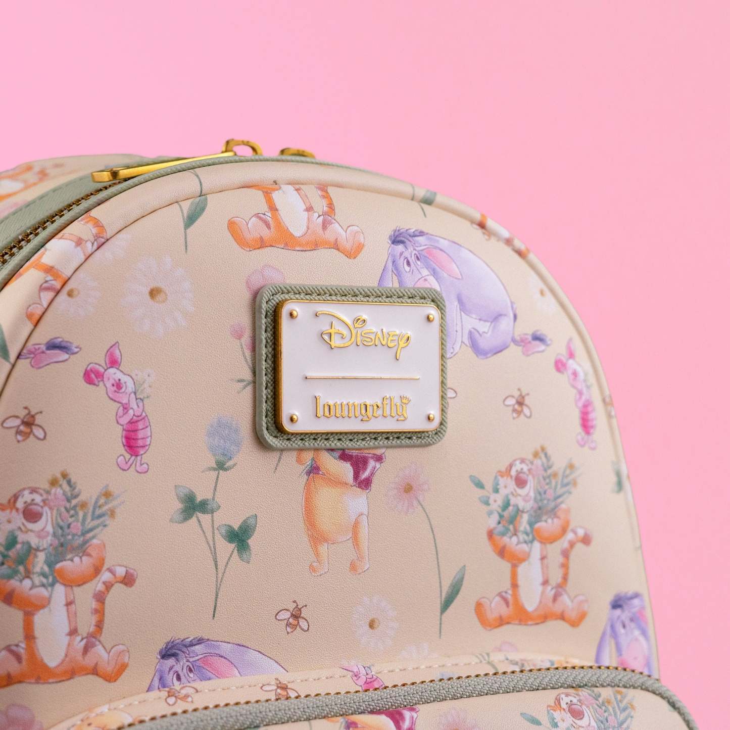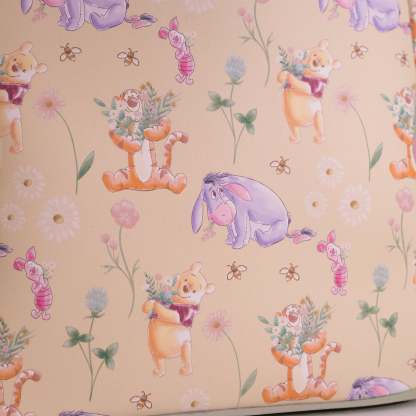 Featuring Pooh, Piglet, Eeyore, and Tigger surrounded by soft wildflowers and buzzing bees, this GeekCore Exclusive Loungefly all-over print mini backpack is a sweet hug of nostalgia perfect for Disney collectors.