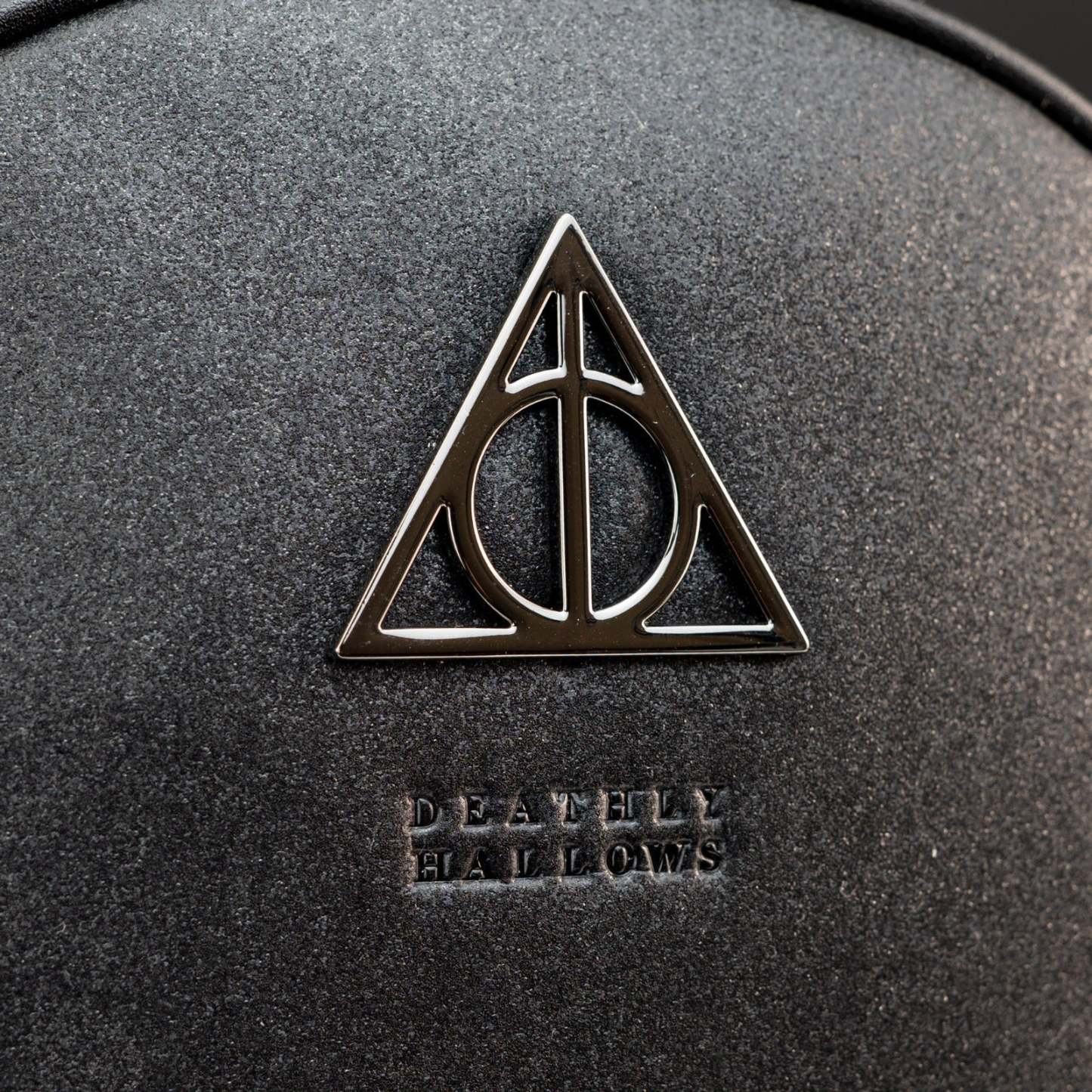 Silver coloured Deathly Hallows metal attachment with debossed print