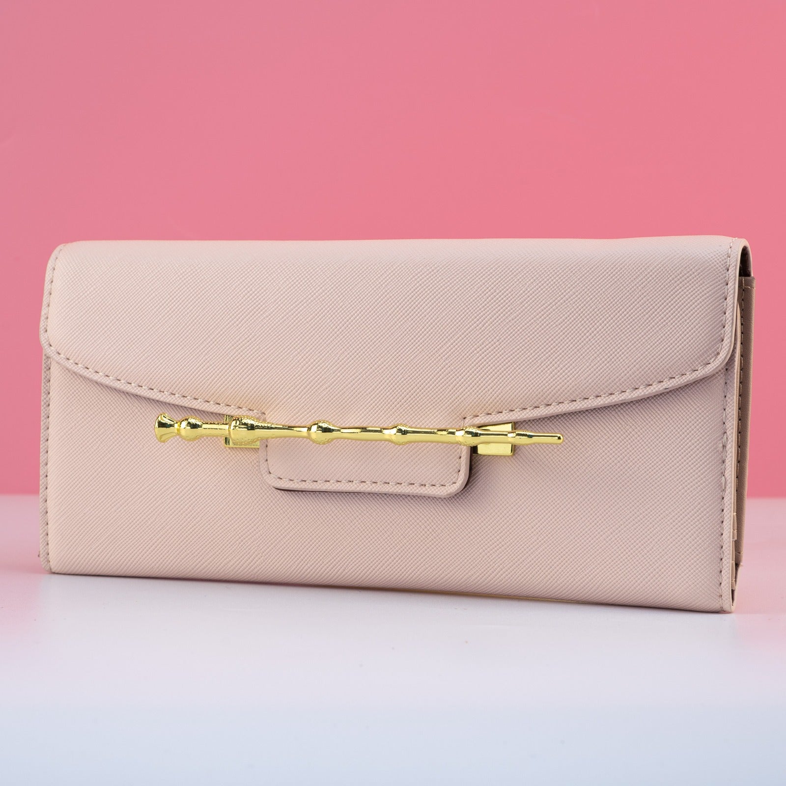 - Light pink premium vegan faux Saffiano leather