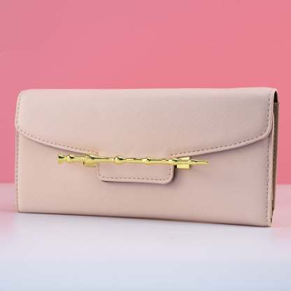 - Tri-fold design, closing button clasp