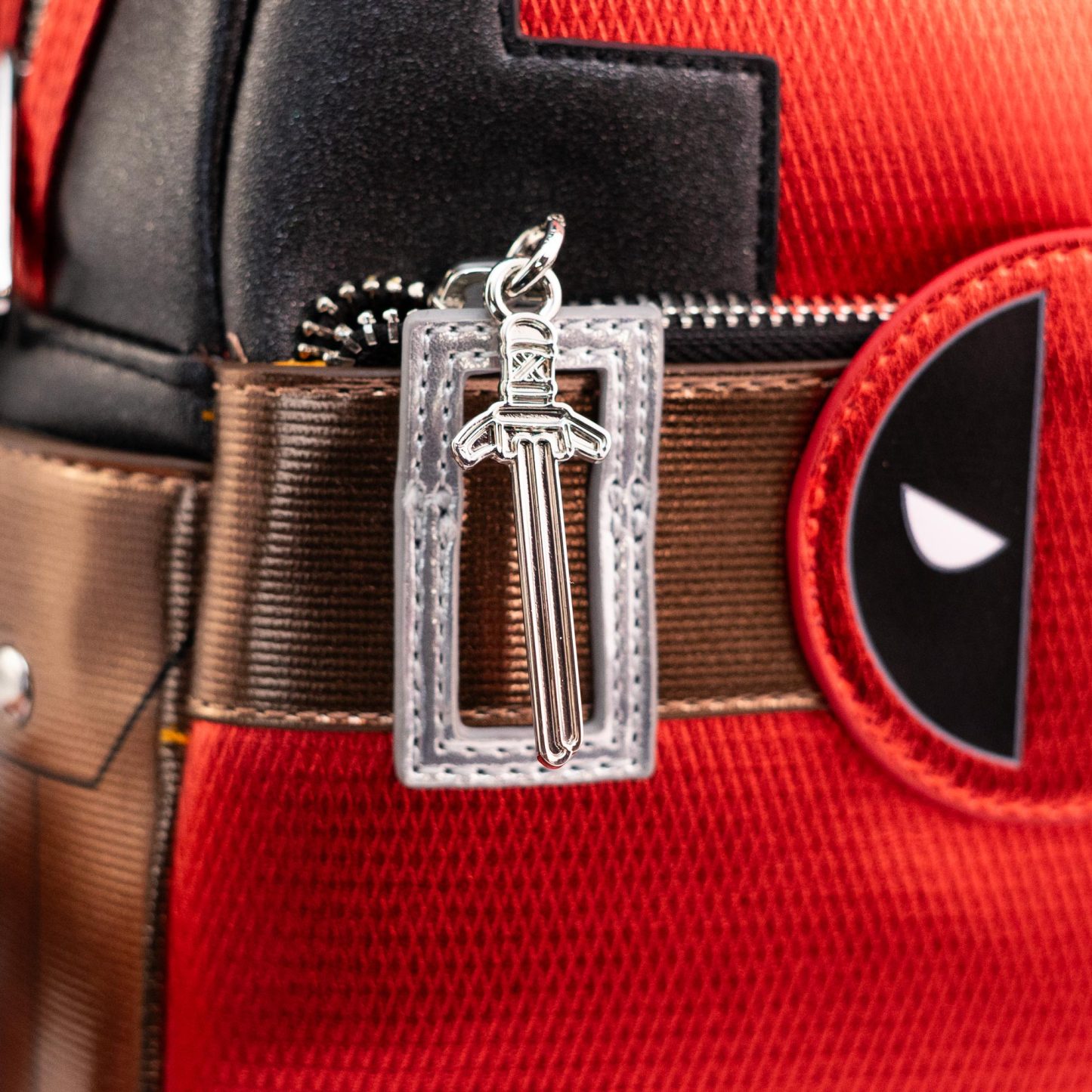 - Features metal Deadpool sword zipper charm