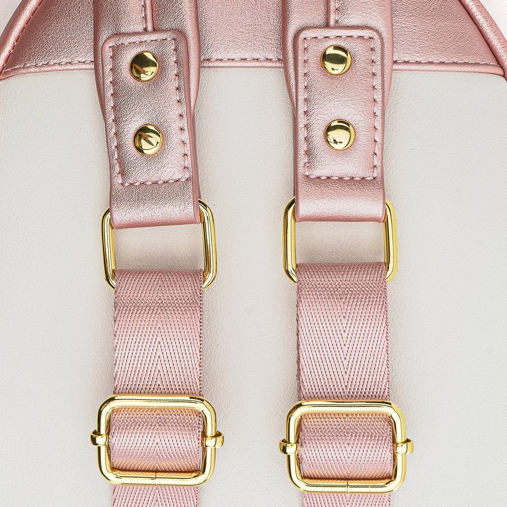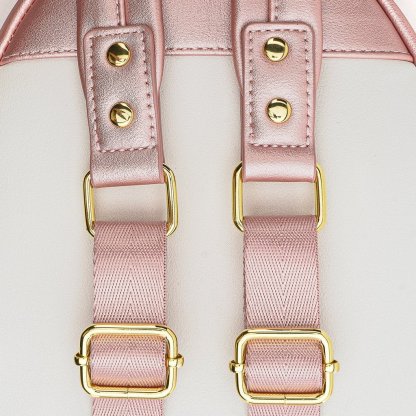 We just had to bring Hello Kitty's best friend to the center stage, presenting My Melody!! Did you all know that My Melody's favorite food is Almond Pound Cake? This mini backpack is truly just as honest and good-natured as My Melody. This Metallic faux leather backpack includes embroidered, applique and metal plaque details.