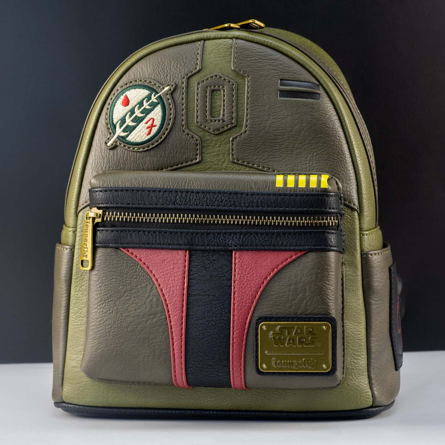 - Printed and stitched Boba Fett helmet design on the front of the backpack
