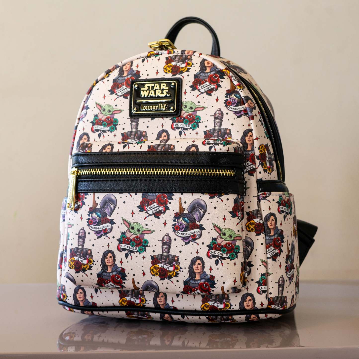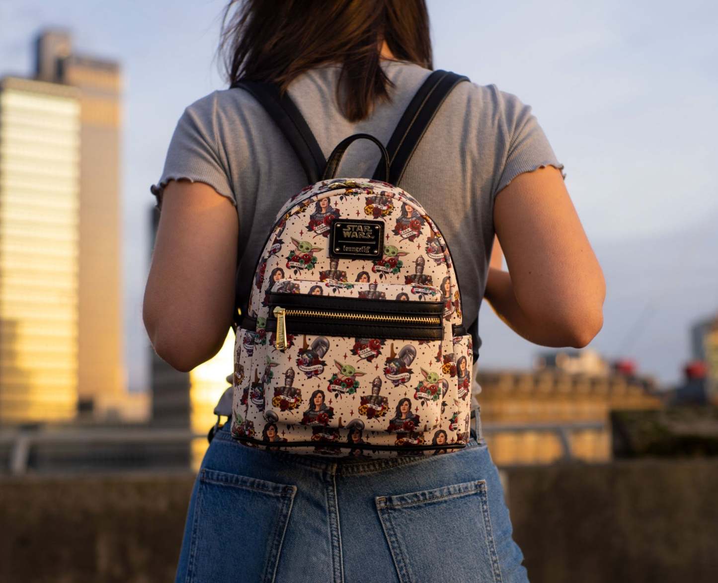 - Finished with signature Loungefly enamel badge