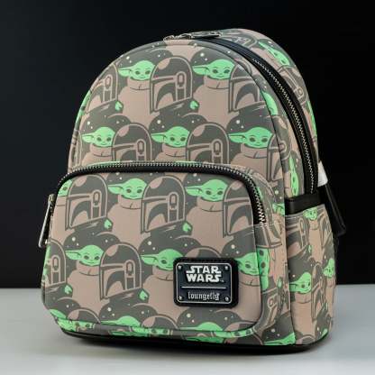 Loungefly x The Mandalorian, Grogu and Mandalorian Print Mini Backpack