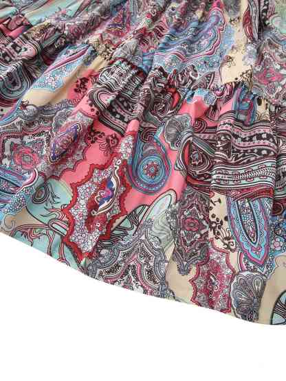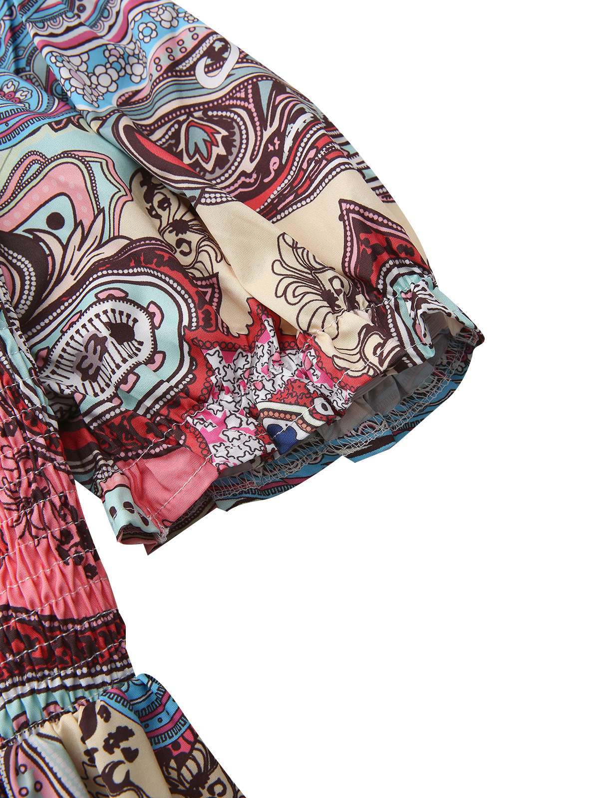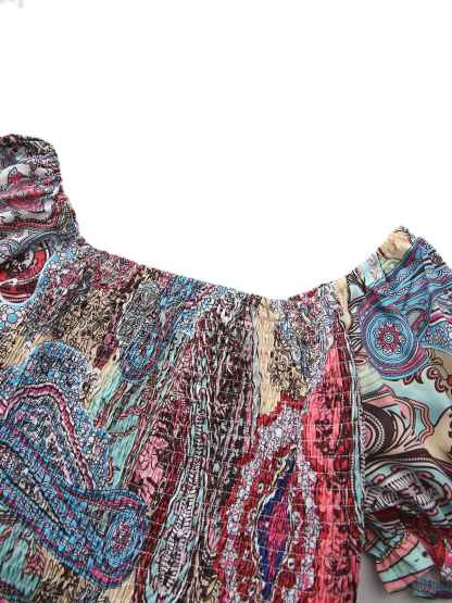 Multicolor 1970s Boho Paisley Print Smocked Puff Dress