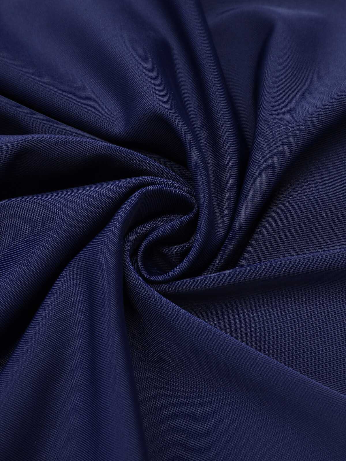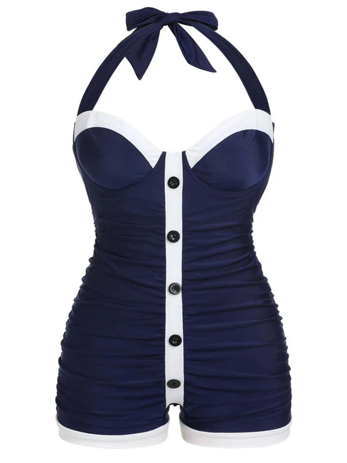 [Plus Size] Navy Blue 1950s Pleated Halter Swimsuit