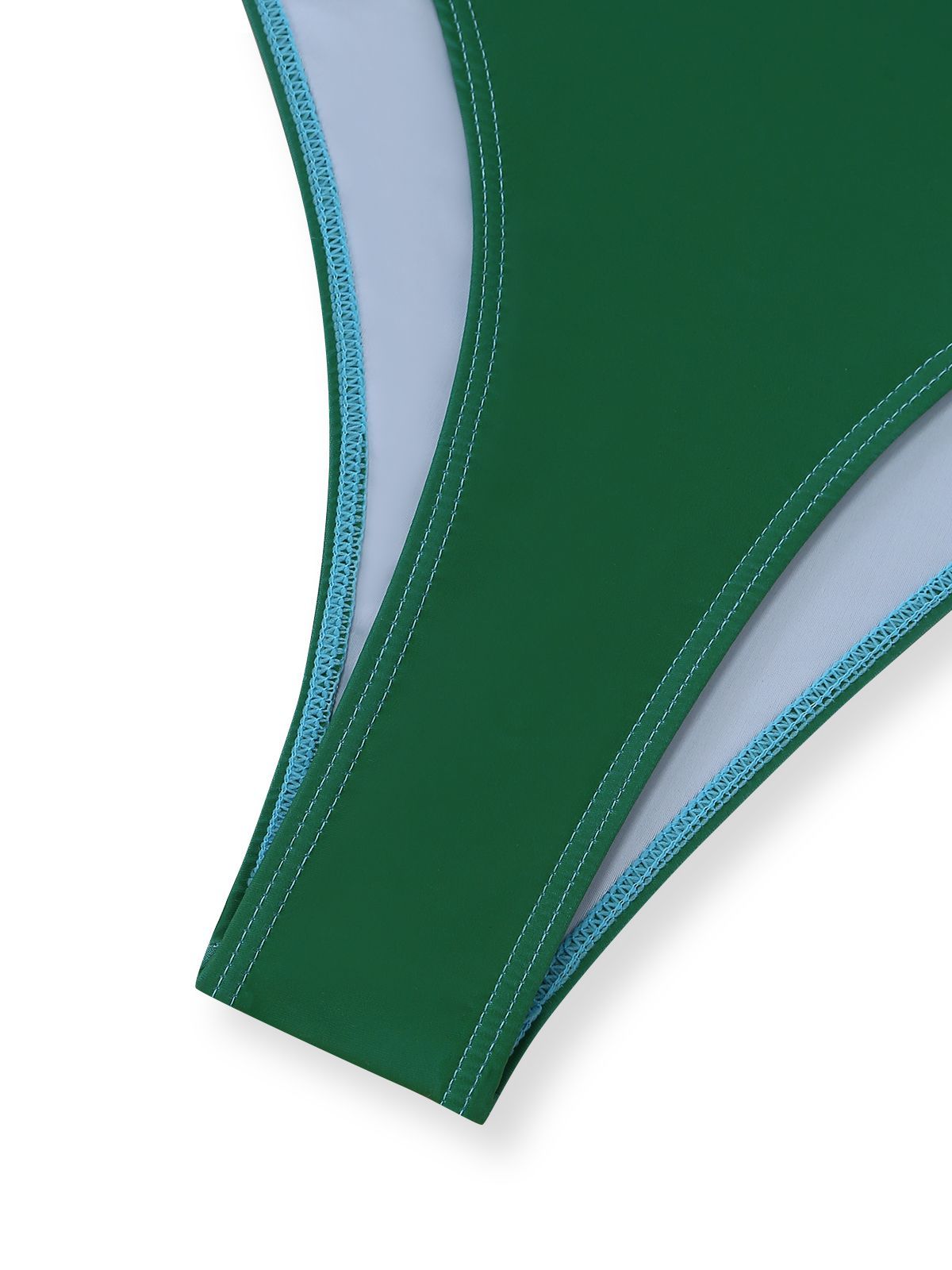 Ombre Green 1930s Ruched One-Piece Swimsuit