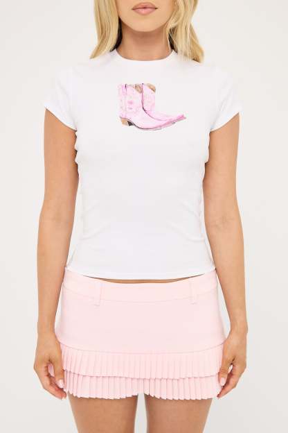 Luck & Trouble Cowgirl Kicks Baby Tee White