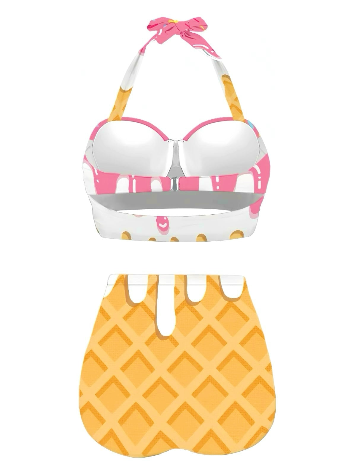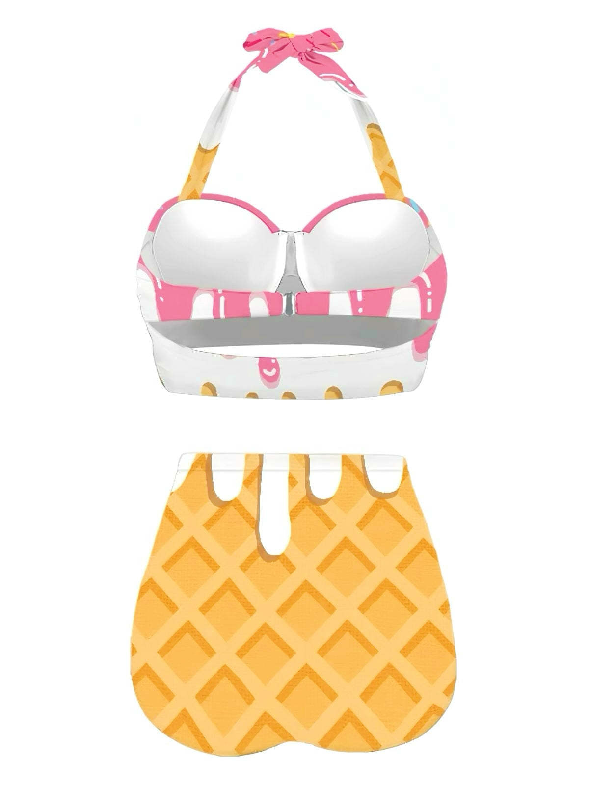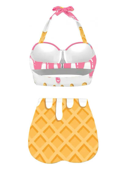Pink 1970s Halter Ice-Cream Cone High-Waist Bikini