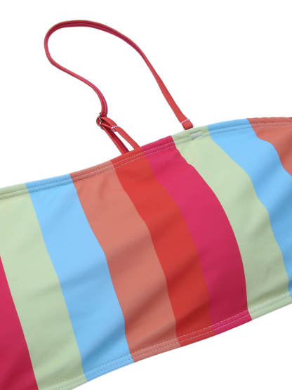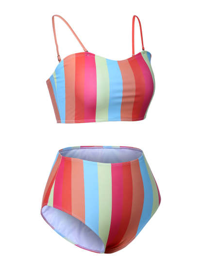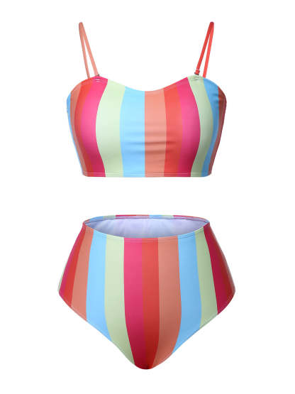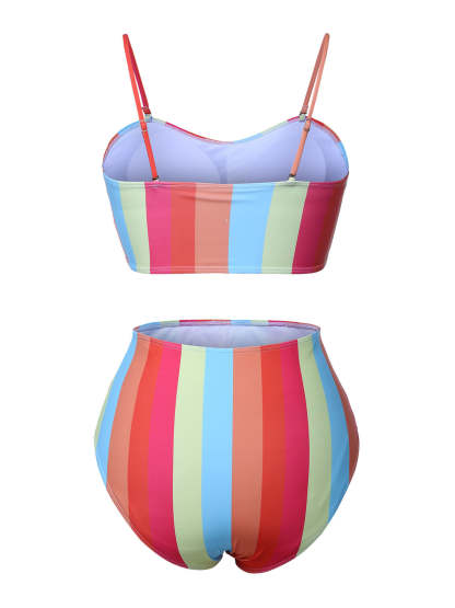 [Plus Size] Colorful 1950s Vertical Stripe Swimsuit