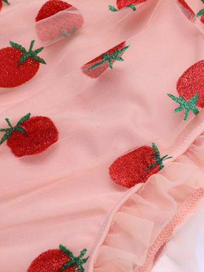 [Plus Size] 1950s Lace Strawberry Cami Tankini Set