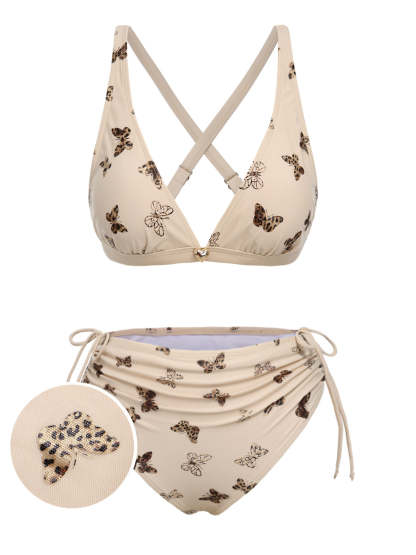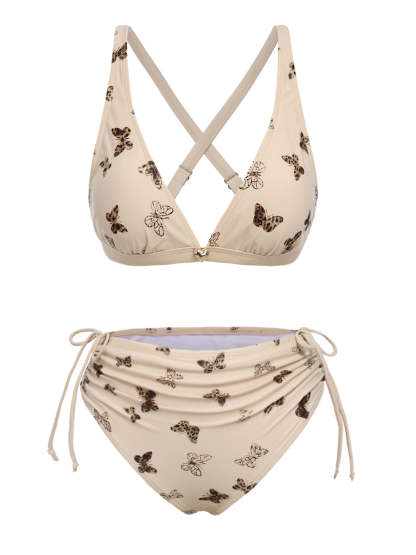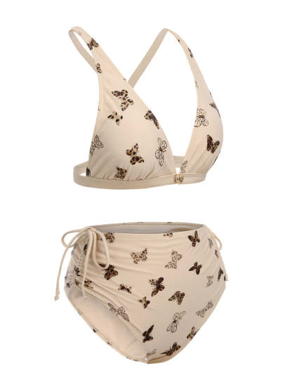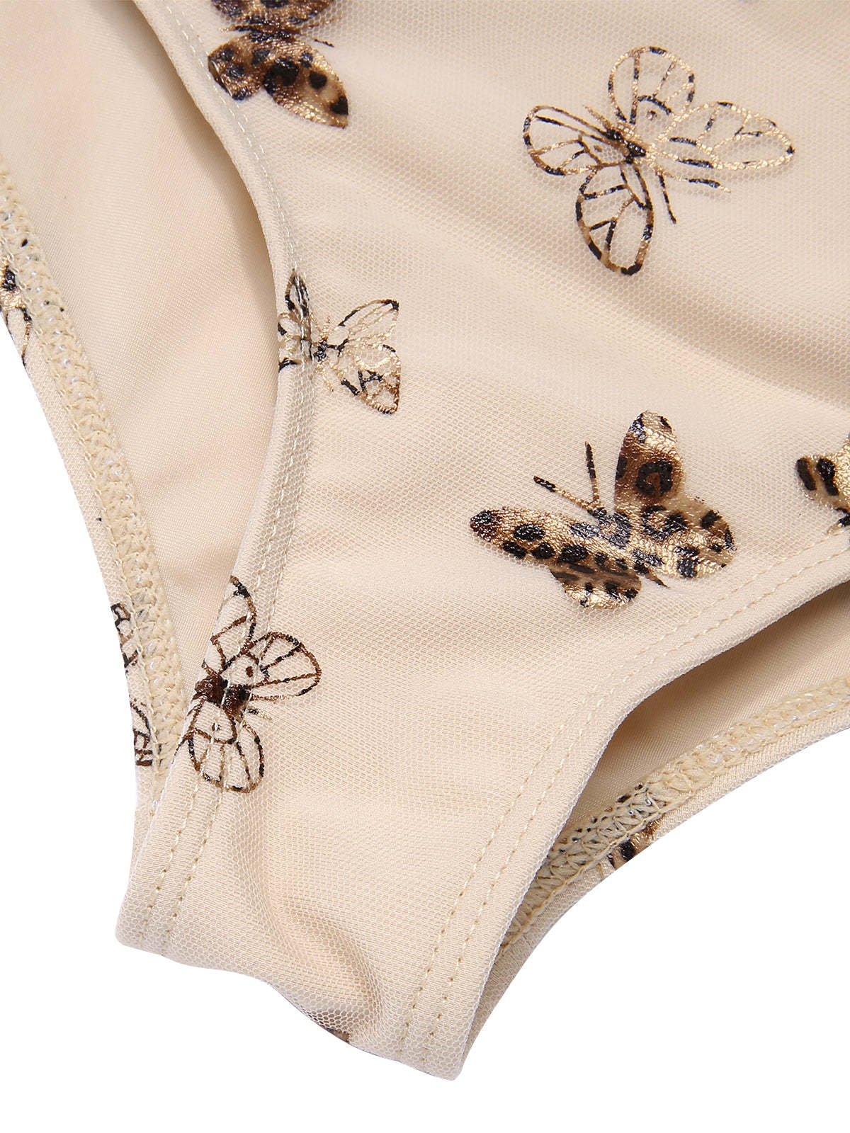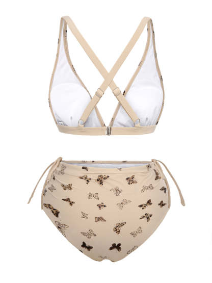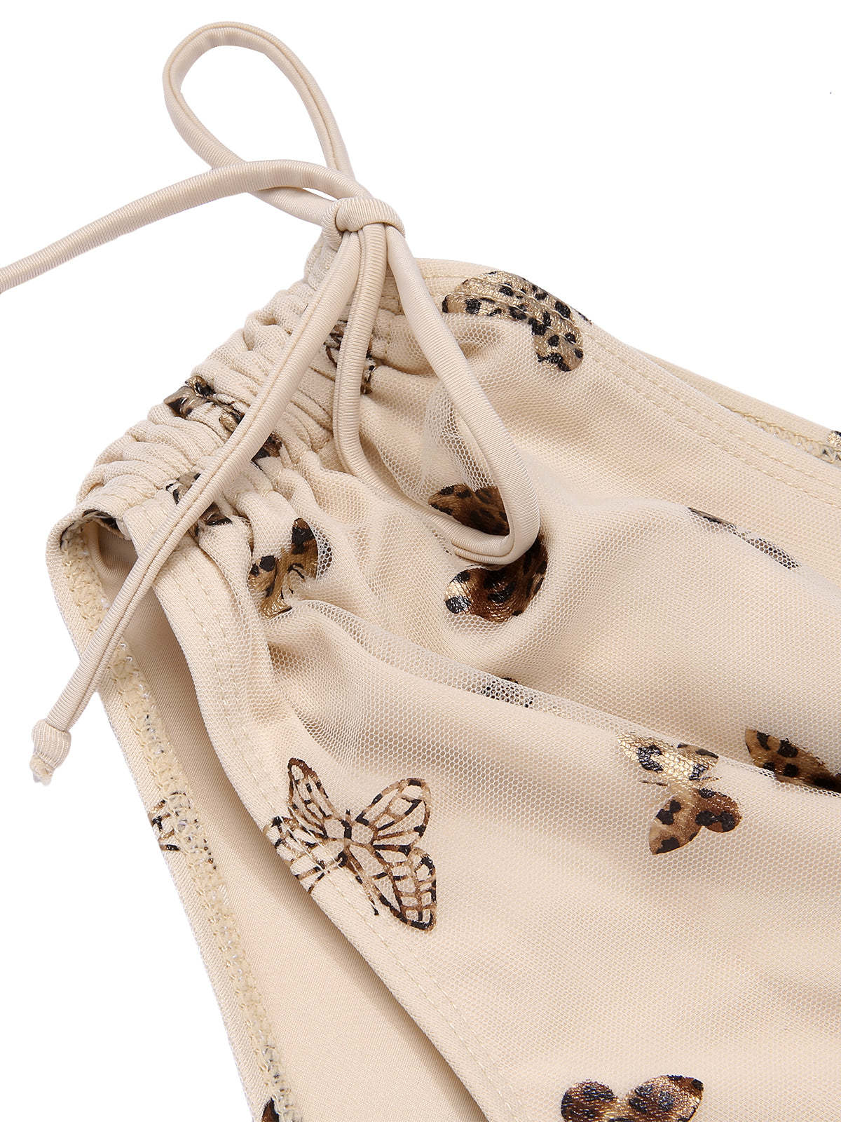 [US Warehouse] Apricot 1950s Butterfly Mesh Lace-Up Swimsuit