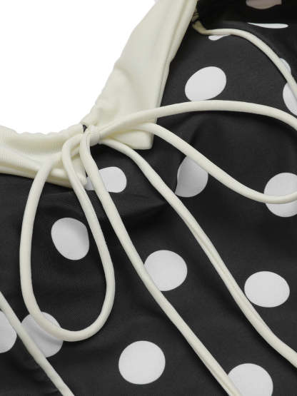 [US Warehouse] Black 1950s Polka Dots Halter Swimsuit