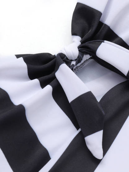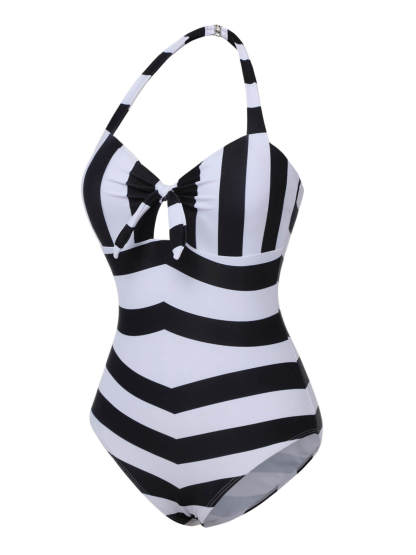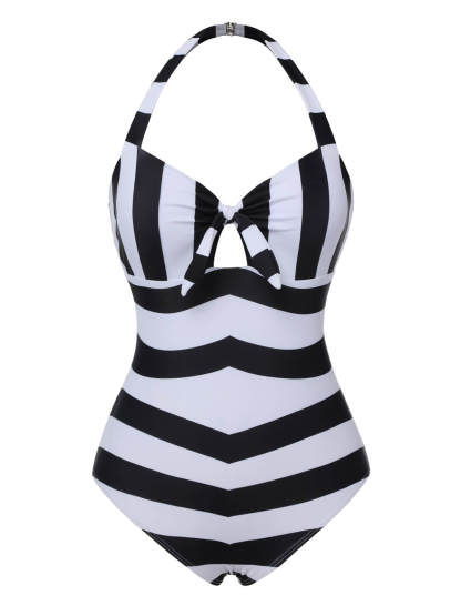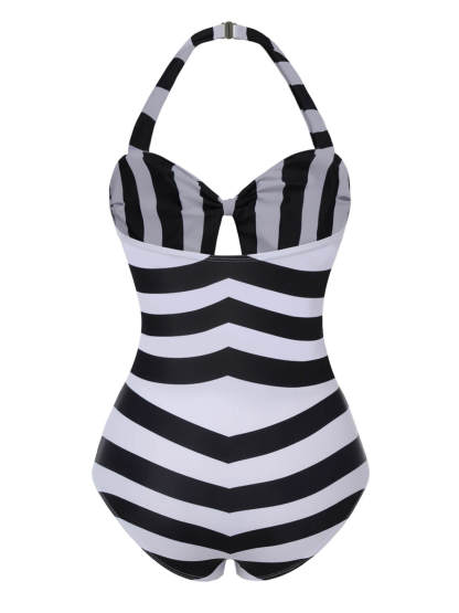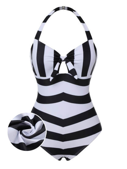 [US Warehouse] Black & White 1950s Barbie Stripes Halter Swimsuit