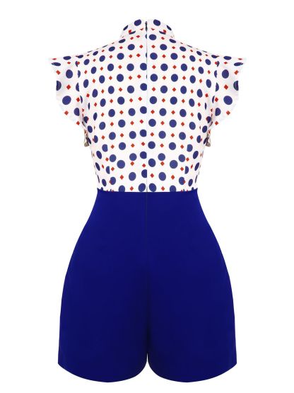 [US Warehouse] Blue 1950s Polka Dot Buttoned Romper