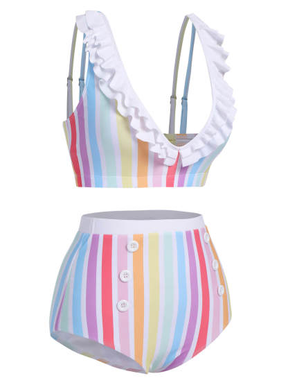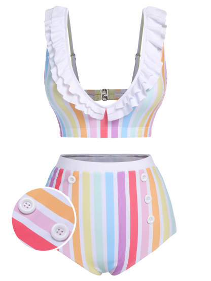 [US Warehouse] Multicolor 1950s Rainbow Stripes Swimsuit