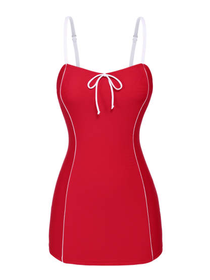 [US Warehouse] Red 1940s Bow Straps One-Piece Swimsuit