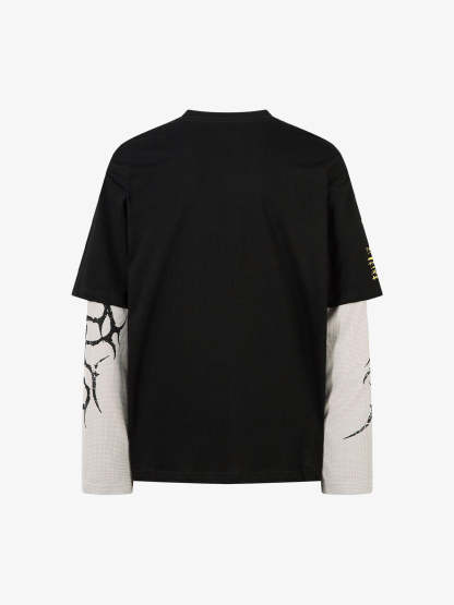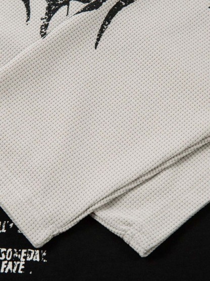 • Design Elements: Distressed graphic print, layered sleeve design, bold typography