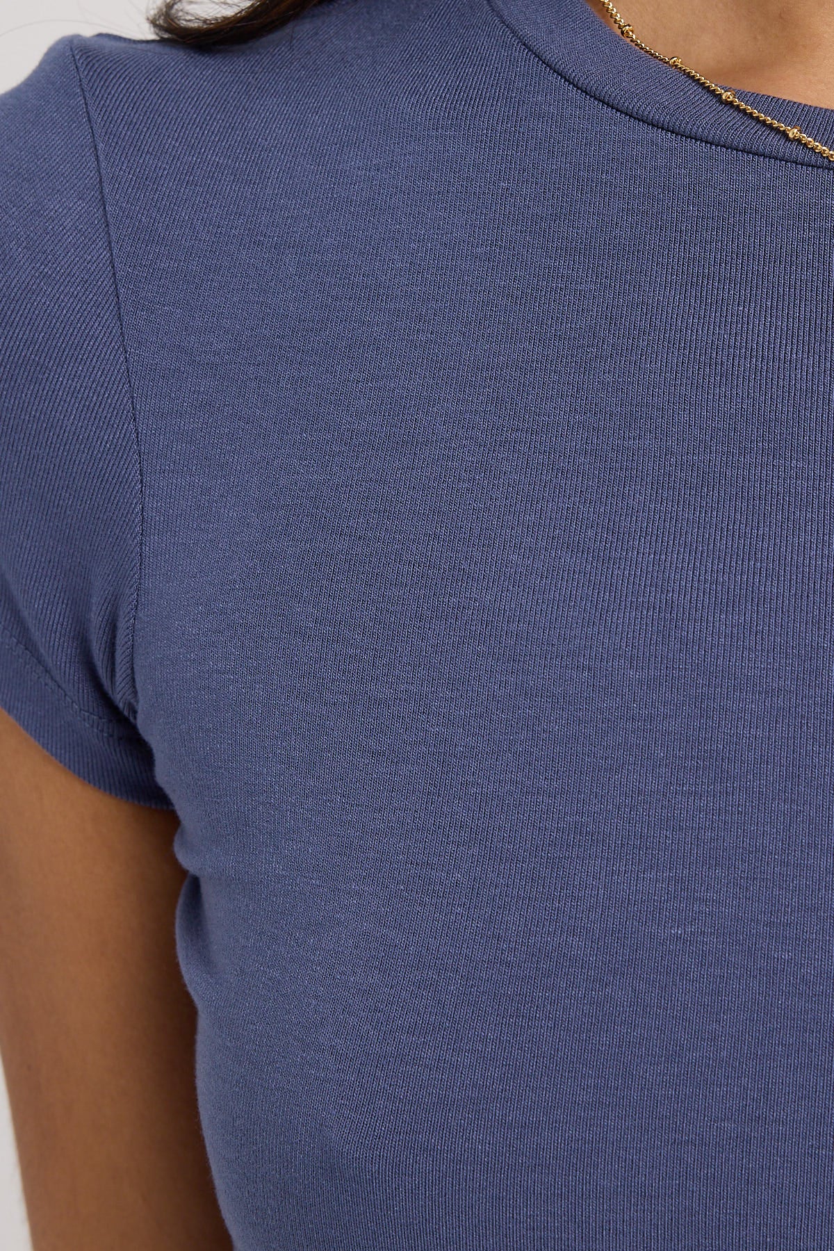 Add some flair to your wardrobe with the Cap Sleeve Tee in blue. This shirt's cap sleeve feature and bold colour, combined with its soft fabric, make it perfect for any laid-back event. Round out the outfit with a cute pair of .