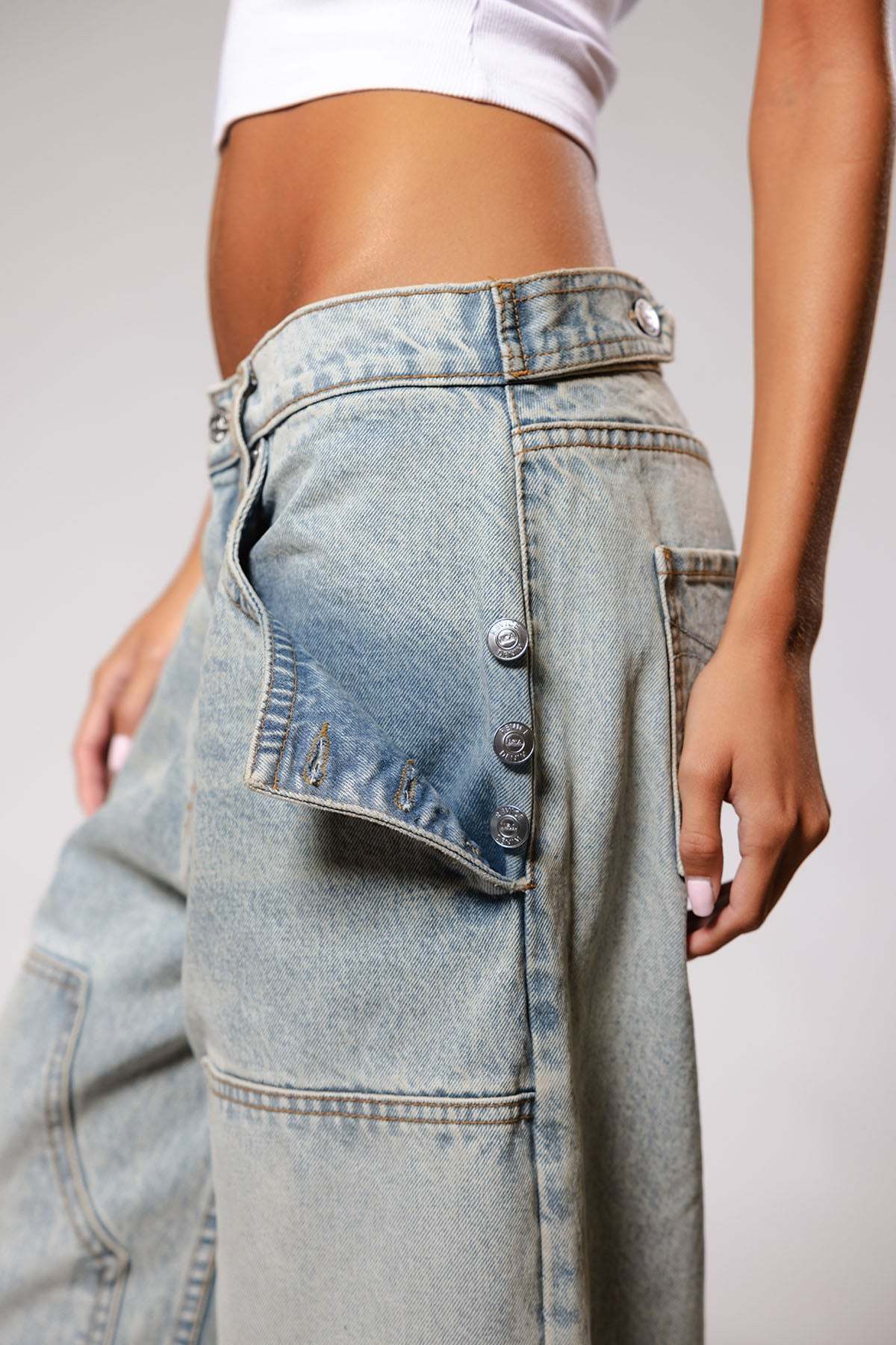 Your go-to fall jean is here! The Mason Jean is meticulously designed to effortlessly transition from low-rise to mid-rise for not only customizable comfort but unlimited ways to style. The Mason features a carpenter patch and adjustable side pocket details, combining style with practicality. With its unique front pocket flap detail, these jeans offer a distinctive one-of-a-kind touch to elevate your look effortlessly. Size up for a baggier look.