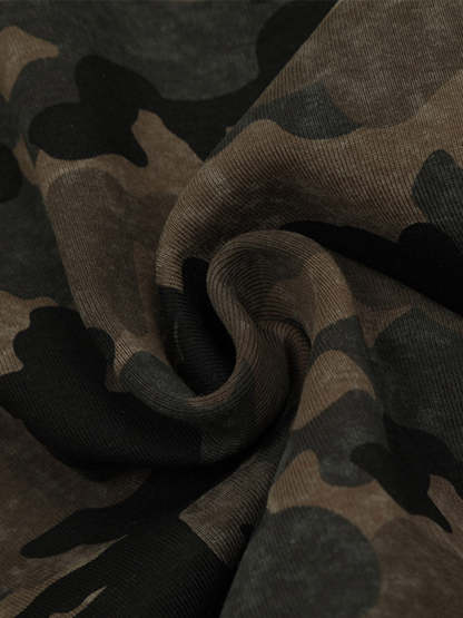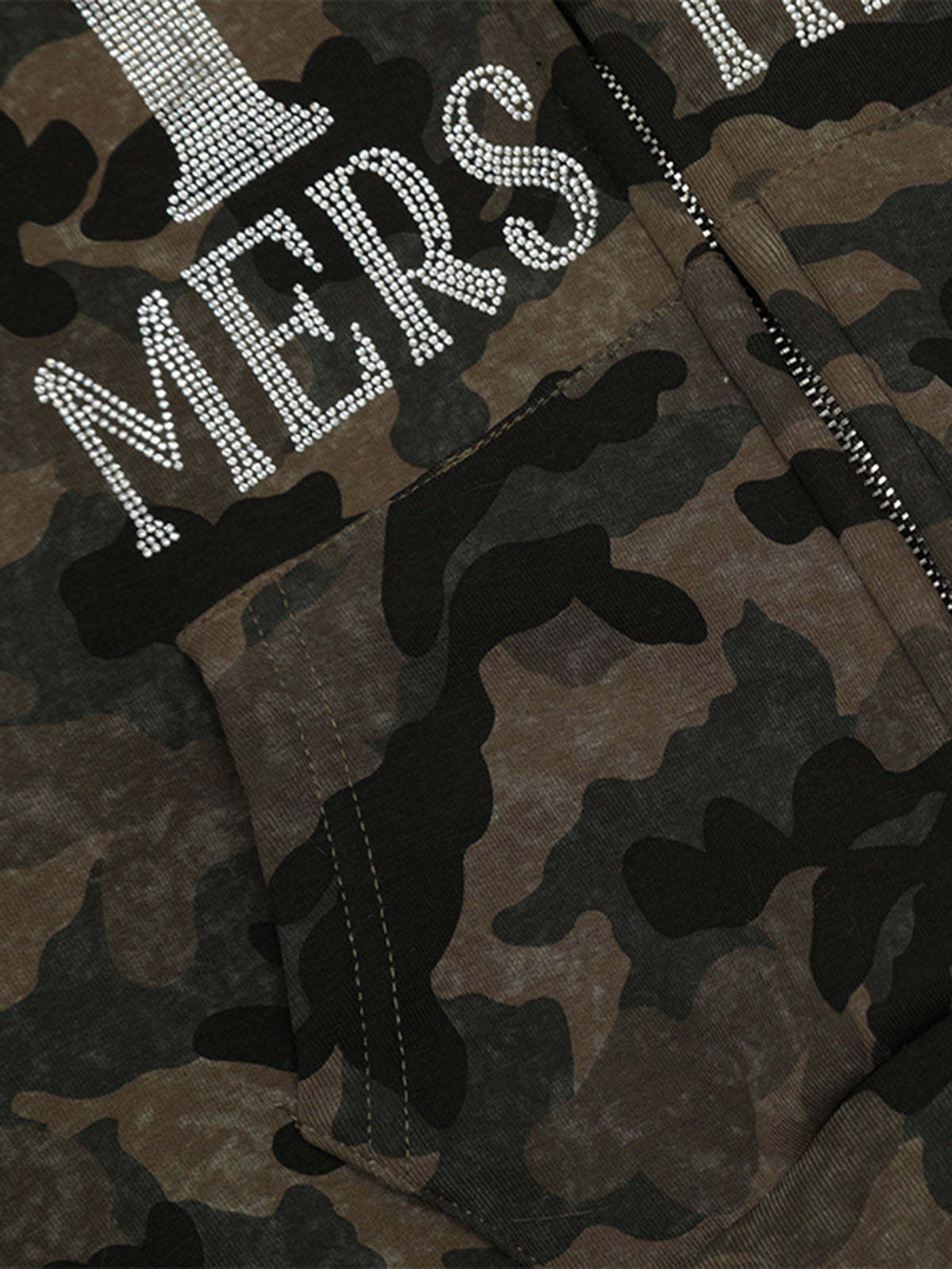 Hotfix Rhinestones Camouflage Fur Hooded Fleece Jacket - 2357