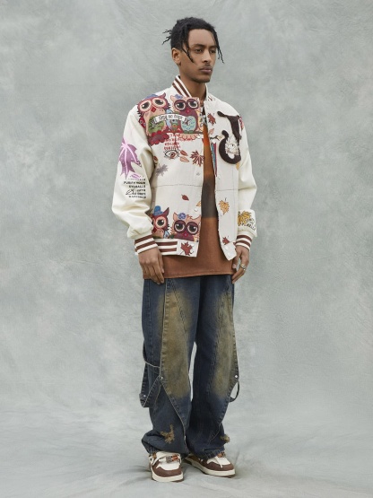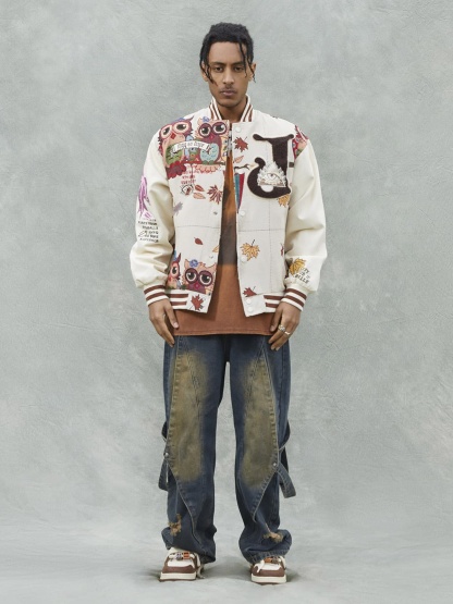 • Detail Features: Embroidered Designs, Patch Details, Ribbed Cuffs and Hem, Zippered Front Closure